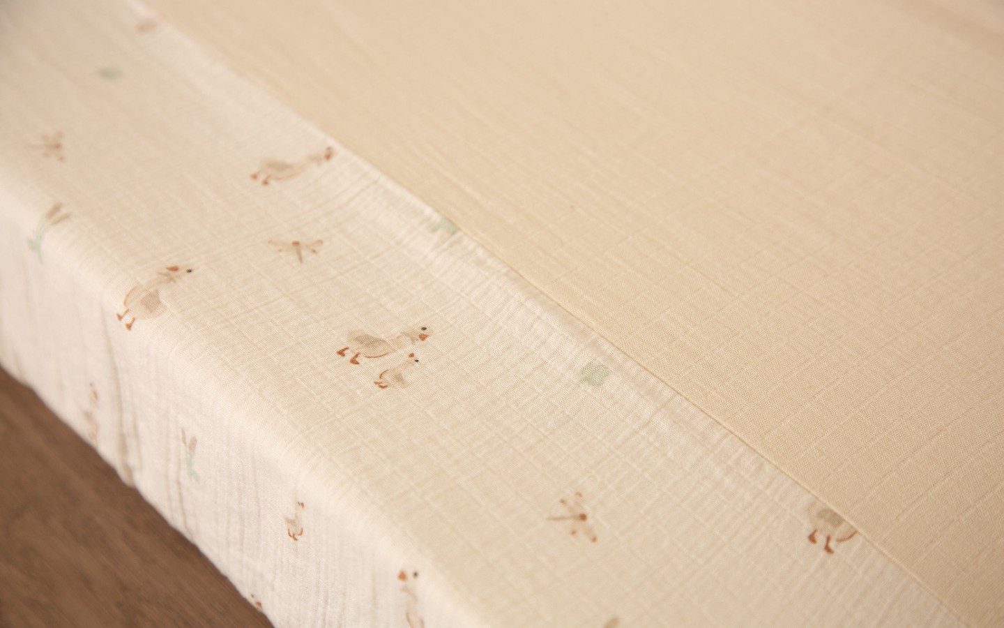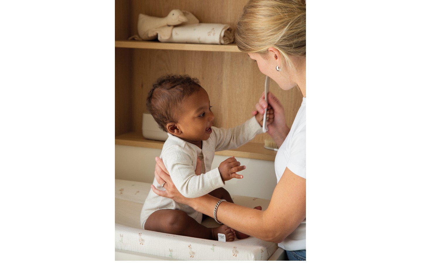 De jersey aankleedkussenhoes van bébé-jou biedt warmte en comfort aan je kleintje. De hoes heeft in de hoeken elastiek waardoor deze goed om het waskussen blijft zitten en is passend voor het bébé-jou aankleedkussen 72x44 cm. De aankleedkussenhoes is Oeko-Tex gecertificeerd en wasbaar op 40 graden.