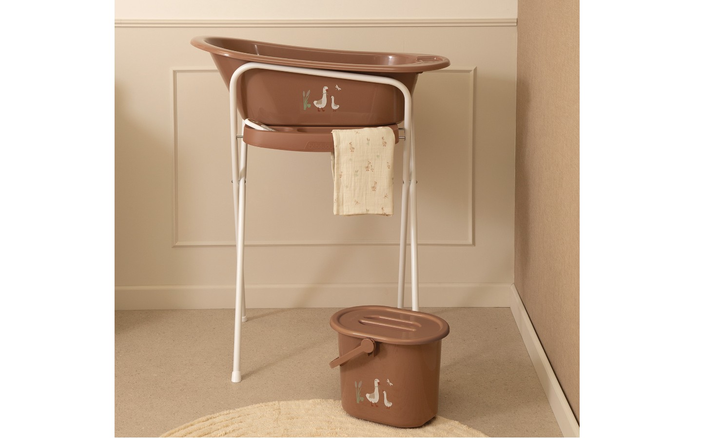 De bébé-jou inklapbare badstandaard is uitgerust met een speciaal 'CLICK systeem'. Met behulp van dit innovatieve systeem plaats je het bébé-jou babybad 256 en thermobad 260 heel eenvoudig, 'met 2 clicks' muurvast op de standaard. Net zo gemakkelijk 'click' je de badjes weer los, door aan de onderzijde van de badstandaard het systeem in te knijpen. Heel handig, ook de bébé-bubble (bademmer) is geschikt voor deze badstandaard. Kortom je hebt maar één standaard nodig waarop je de bademmer, maar later ook het badje kan plaatsen. Natuurlijk is een goede houding erg belangrijk tijdens het badderen en ook wil je alles bij de hand hebben. De badstandaard is daarom uitgerust met een handdoekenrek en verkrijgbaar in twee verschillende hoogtes: 98cm en 103cm.