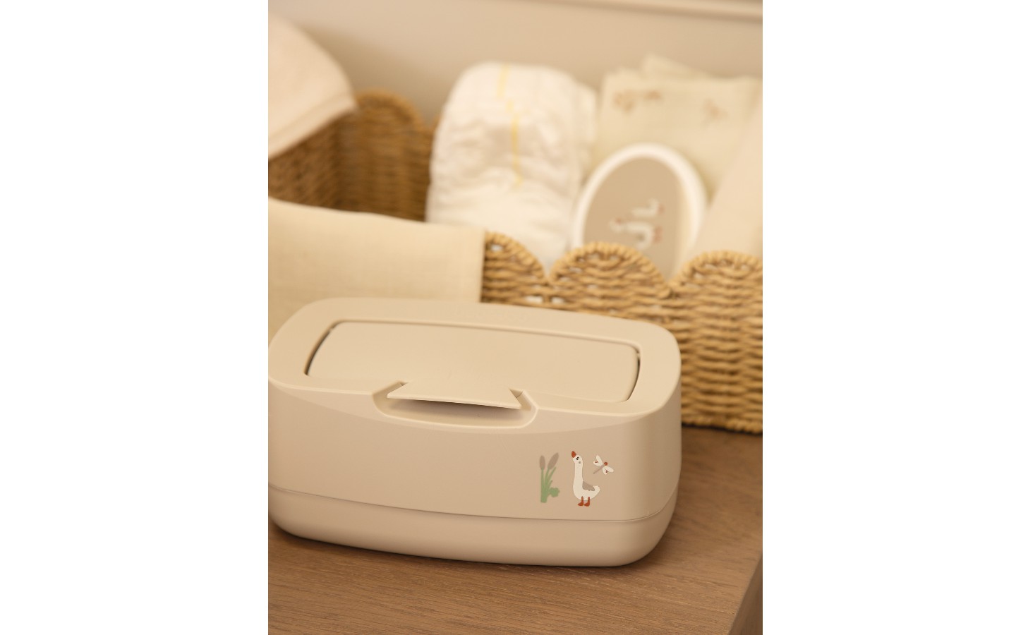 De nieuw ontworpen bébé-jou easy wipe box is een praktische box met een moderne look en feel, ontworpen voor het opbergen van vochtige babydoekjes. De easy wipe box voorkomt dat de doekjes uitdrogen en de speciale opening zorgt ervoor dat het volgende doekje er makkelijk uit kan worden gehaald. De box is eenvoudig met één hand te openen en te sluiten. De easy wipe box is geschikt voor alle merken babydoekjes.